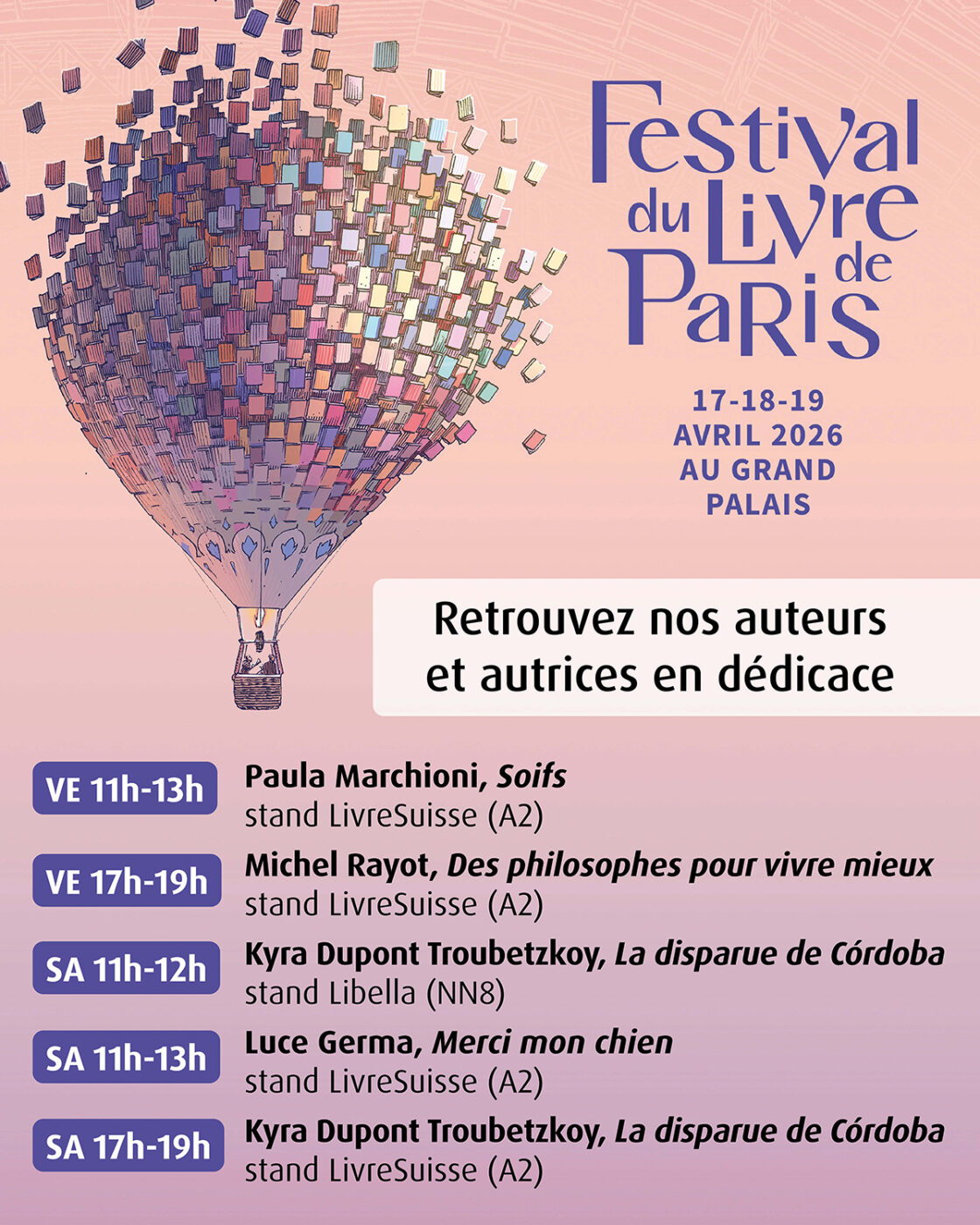 Vous pourrez retrouver plusieurs de nos auteurs et autrices en dédicace au Festival du livre de Paris, qui se tiendra du 17 au 19 avril au Grand Palais.