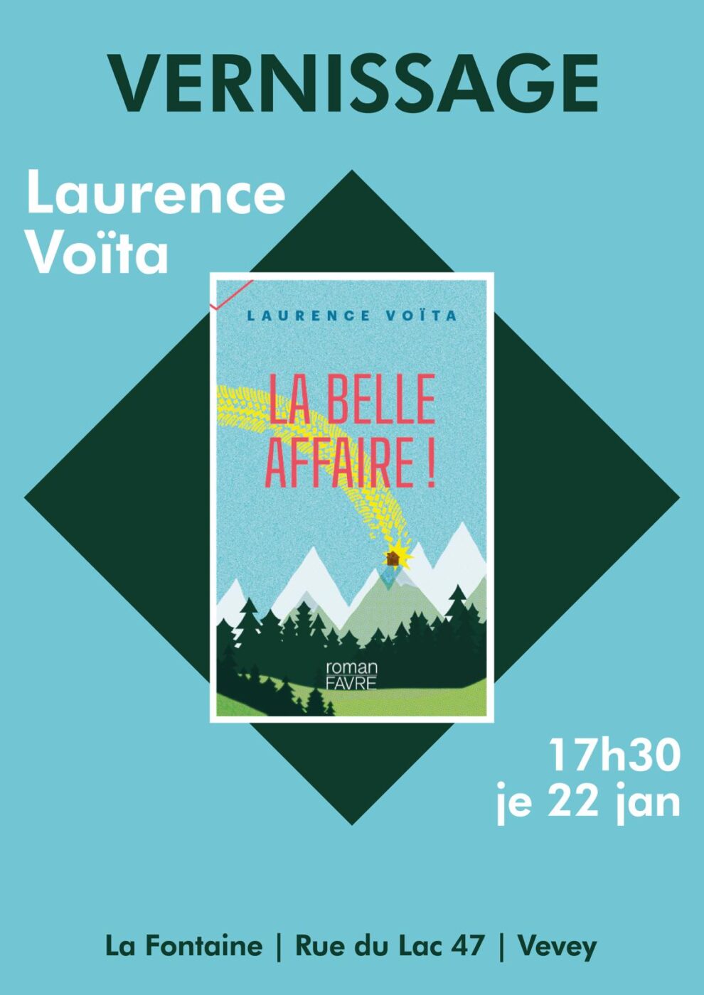 Vous êtes toutes et tous bienvenus au vernissage qui se tiendra le jeudi 22 janiver dès 17h30 à la Librairie La Fontaine, à Vevey.